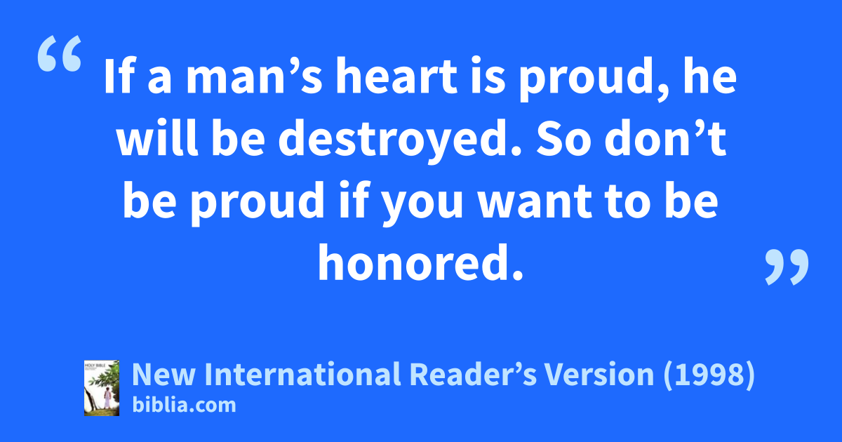 12 If a man’s heart is proud, he will be destroyed.