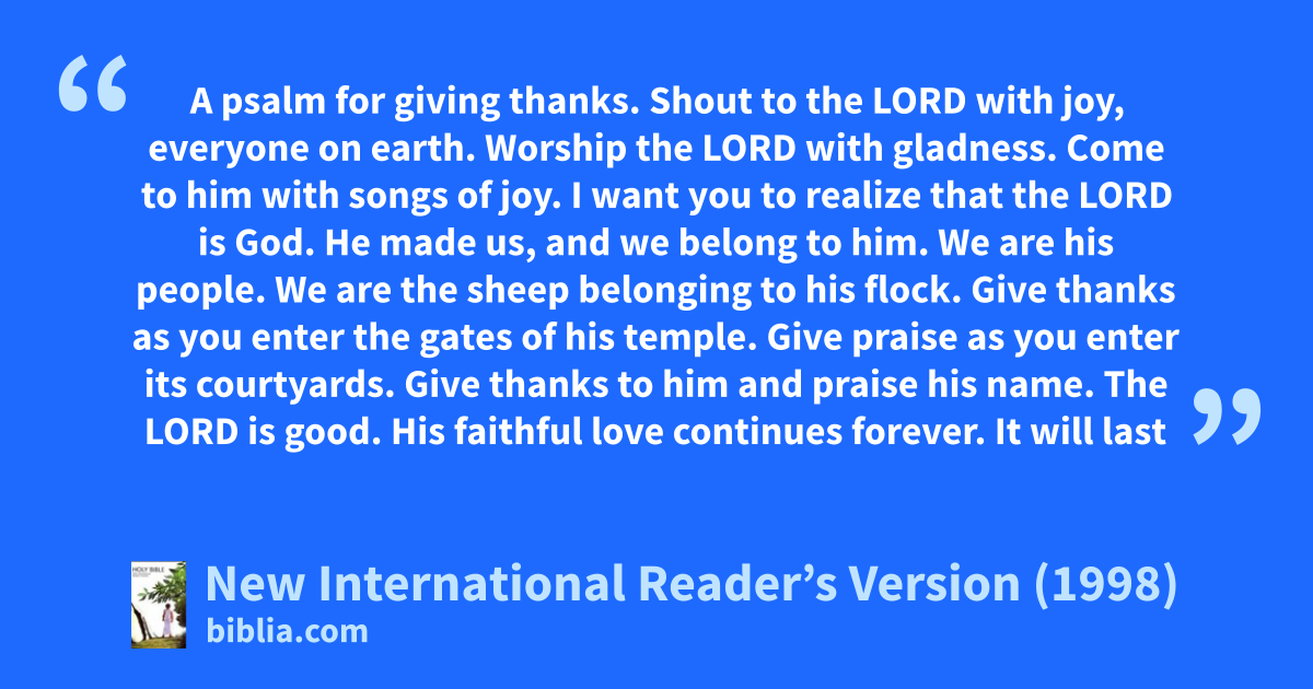 5 The Lord is good. His faithful love continues forever.