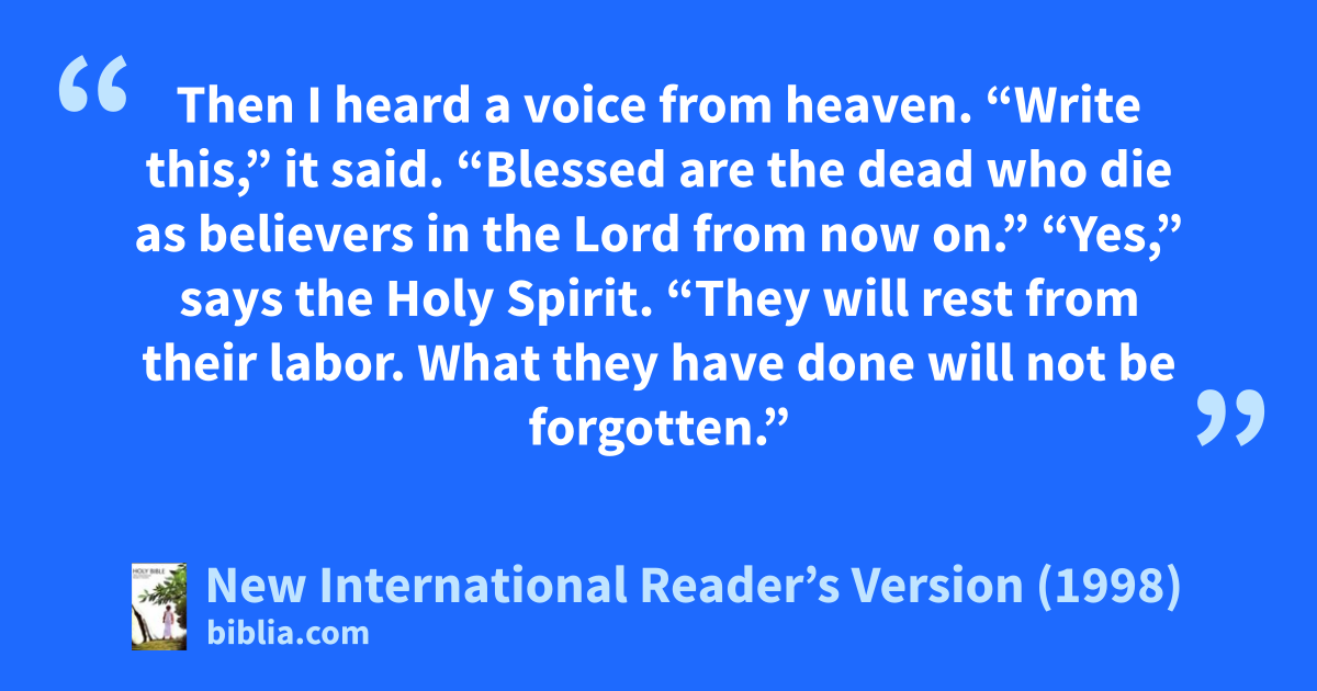 13Then I heard a voice from heaven. “Write this,” it said. “Blessed are the dead who die as believers in the Lord from now on.”