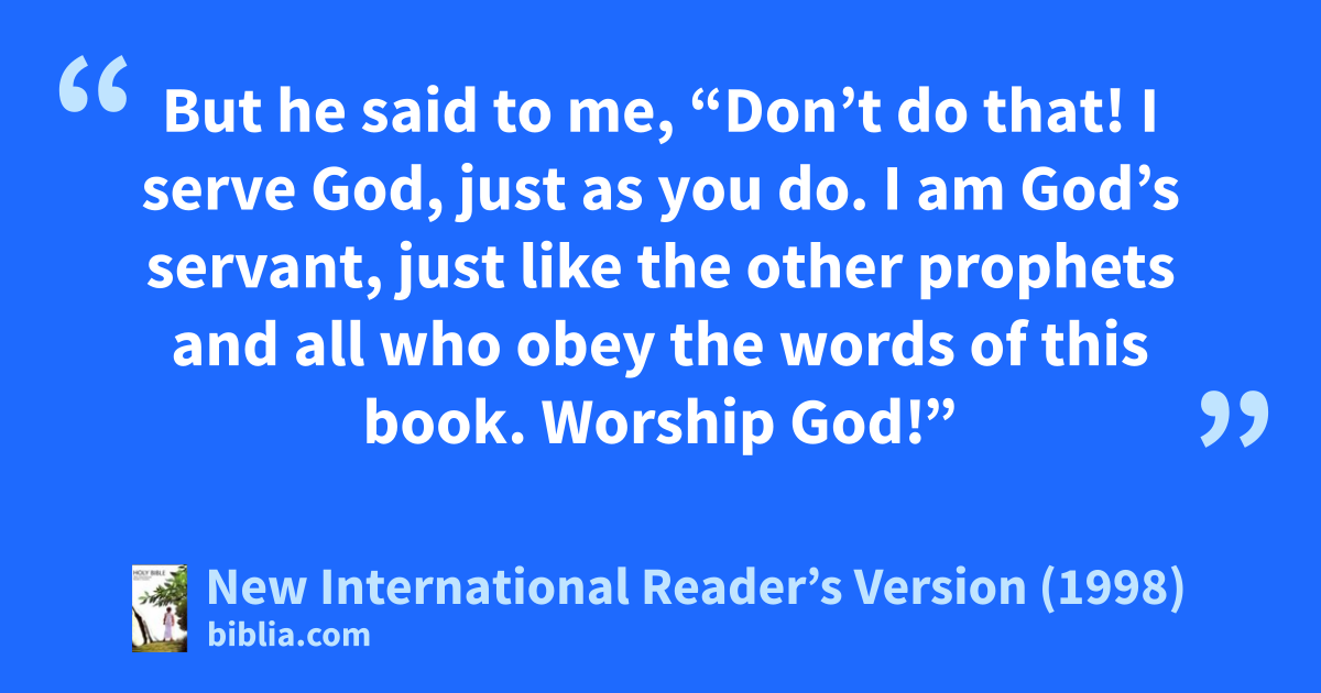 9But he said to me, “Don’t do that! I serve God, just as you do. I am God’s servant, just like the other prophets and all who obey the words of this book. Worship God!”