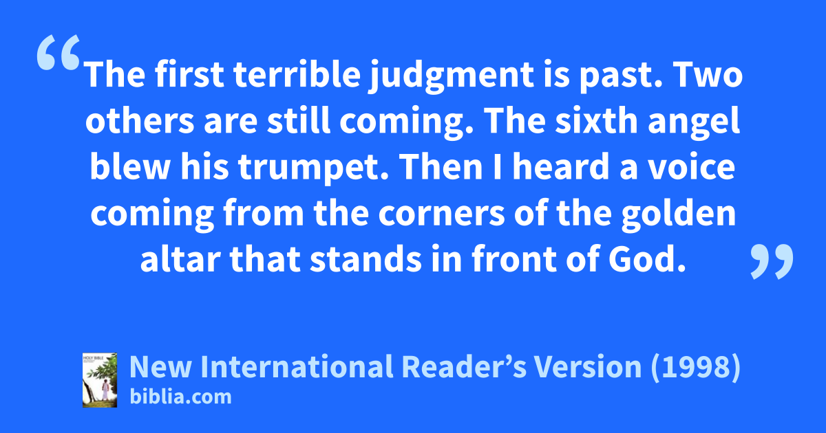 13The sixth angel blew his trumpet. Then I heard a voice coming from the corners of the golden altar that stands in front of God. 14The voice spoke to the sixth angel who had the trumpet. It said, “Set the four angels free who are held at the great river Euphrates.”