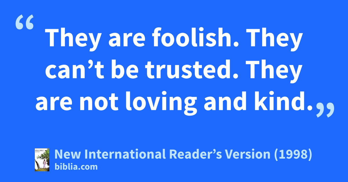 29They are full of every kind of sin, evil and ungodliness. They want more than they need. They commit murder. They want what belongs to other people. They fight and cheat. They hate others. They say mean things about other people. 30They tell lies about them. They hate God. They are rude and proud. They brag. They think of new ways to do evil. They don’t obey their parents. 31They are foolish. They can’t be trusted. They are not loving and kind.