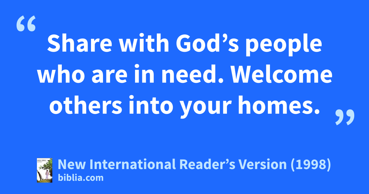 12When you hope, be joyful. When you suffer, be patient. When you pray, be faithful. 13Share with God’s people who are in need. Welcome others into your homes.