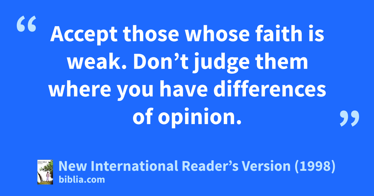 14 Accept those whose faith is weak. Don’t judge them where you have differences of opinion.