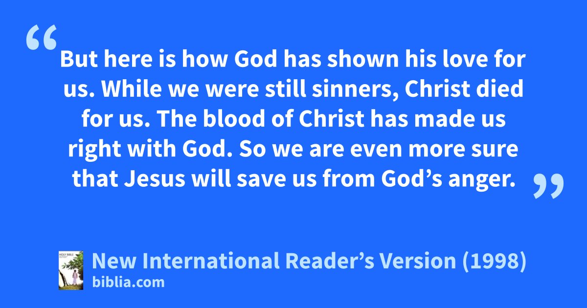 9The blood of Christ has made us right with God. So we are even more sure that Jesus will save us from God’s anger. 10Once we were God’s enemies. But we have been brought back to him because his Son has died for us. Now that God has brought us back, we are even more secure. We know that we will be saved because Christ lives.