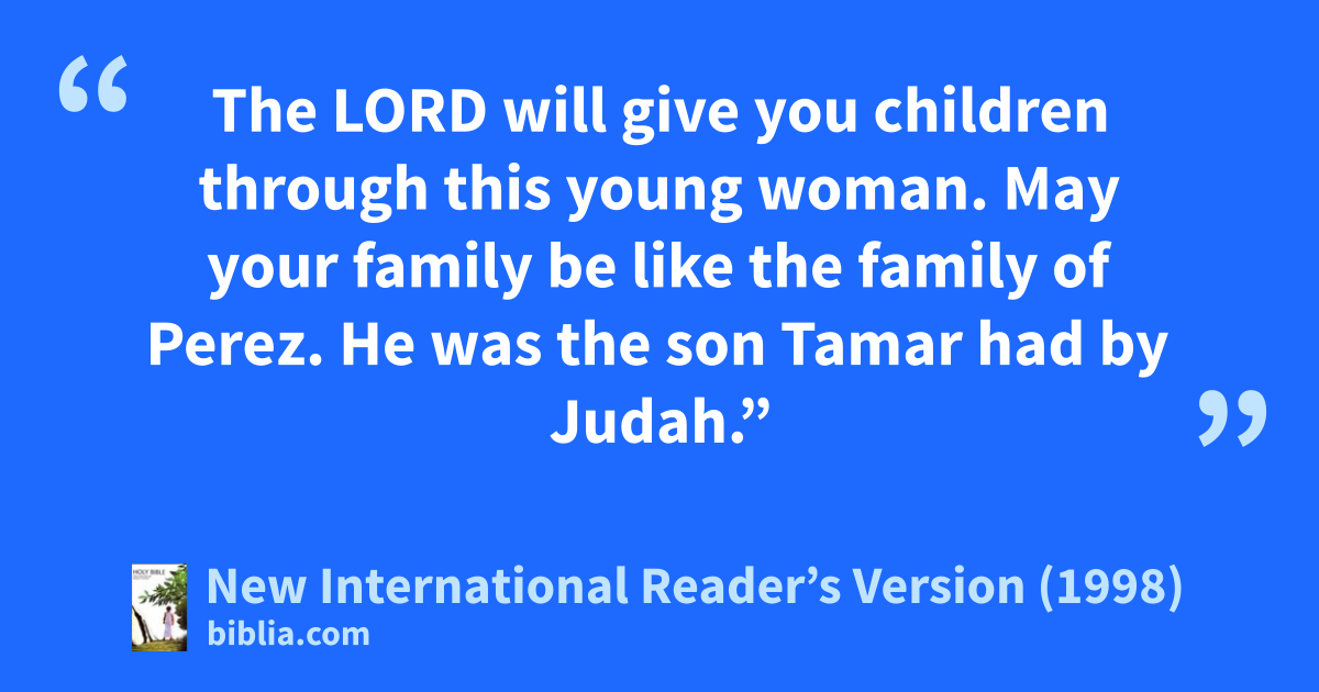 11Then the elders and all who were at the gate spoke. They said, “We are witnesses. The woman is coming into your home. May the Lord make her to be like Rachel and Leah. Together they built up the nation of Israel. May you be an important person in Ephrathah. May you be famous in Bethlehem. 12The Lord will give you children through this young woman. May your family be like the family of Perez. He was the son Tamar had by Judah.”