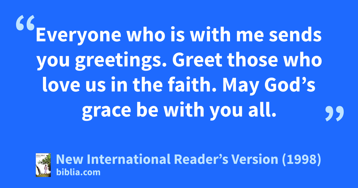 15Everyone who is with me sends you greetings. Greet those who love us in the faith.