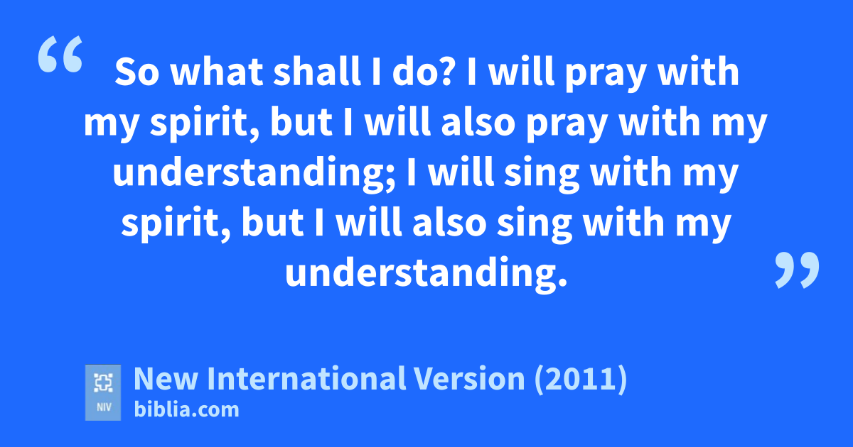 13 For this reason the one who speaks in a tongue should pray that they may interpret what they say.i 14 For if I pray in a tongue, my spirit prays,j but my mind is unfruitful. 15 So what shall I do? I will pray with my spirit,k but I will also pray with my understanding; I will singl with my spirit, but I will also sing with my understanding. 16 Otherwise when you are praising God in the Spirit, how can someone else, who is now put in the position of an inquirer,d say “Amen”m to your thanksgiving,n since they do not know what you are saying? 17 You are giving thanks well enough, but no one else is edified.o