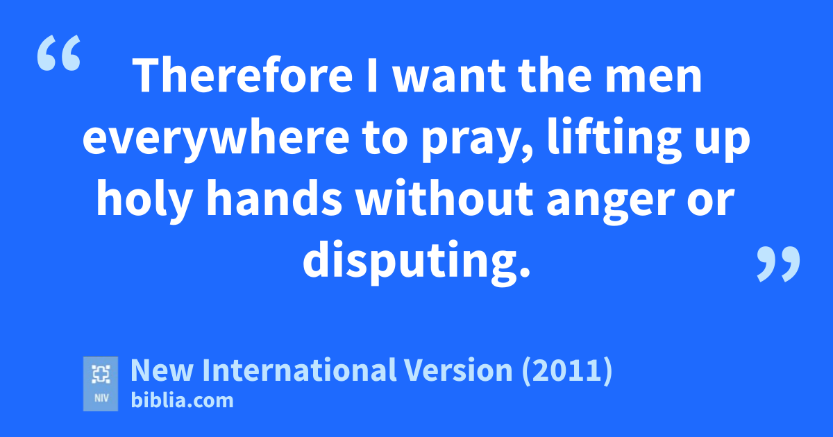 8 Therefore I want the men everywhere to pray, lifting up holy handso without anger or disputing. 9 I also want the women to dress modestly, with decency and propriety, adorning themselves, not with elaborate hairstyles or gold or pearls or expensive clothes,p 10 but with good deeds,q appropriate for women who profess to worship God.