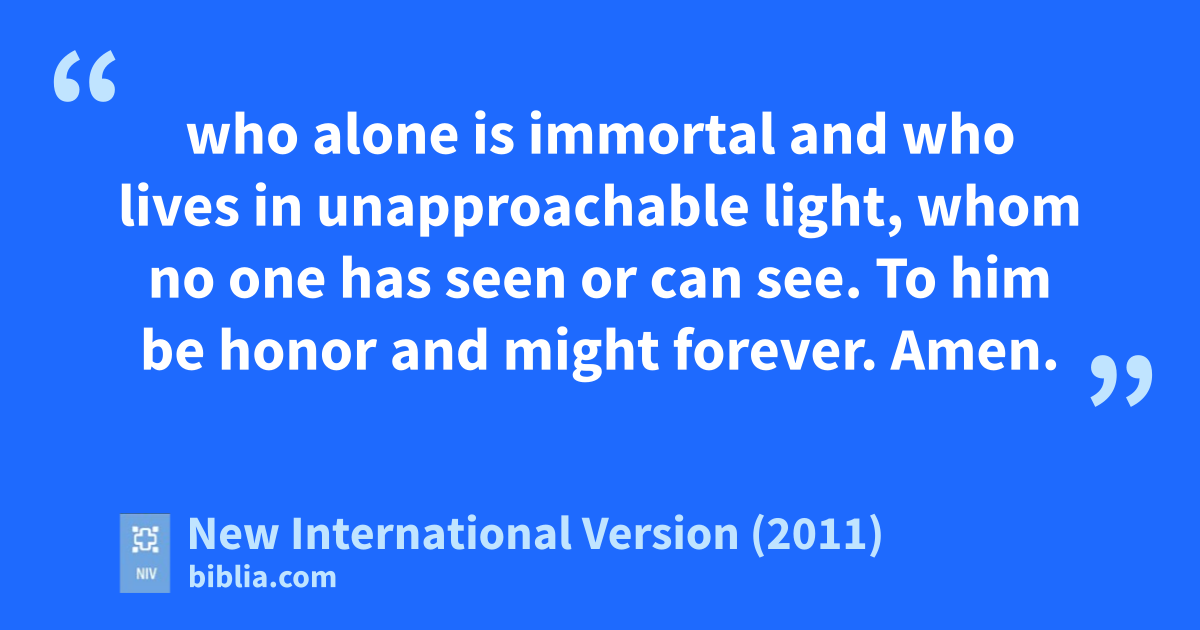 11 But you, man of God,h flee from all this, and pursue righteousness, godliness,i faith, love,j endurance and gentleness. 12 Fight the good fightk of the faith. Take hold ofl the eternal lifem to which you were called when you made your good confessionn in the presence of many witnesses. 13 In the sight of God, who gives life to everything, and of Christ Jesus, who while testifying before Pontius Pilateo made the good confession,p I charge youq 14 to keep this command without spot or blamer until the appearing of our Lord Jesus Christ,s 15 which God will bring about in his own timet—God, the blessedu and only Ruler,v the King of kings and Lord of lords,w 16 who alone is immortalx and who lives in unapproachable light,y whom no one has seen or can see.z To him be honor and might forever. Amen.a