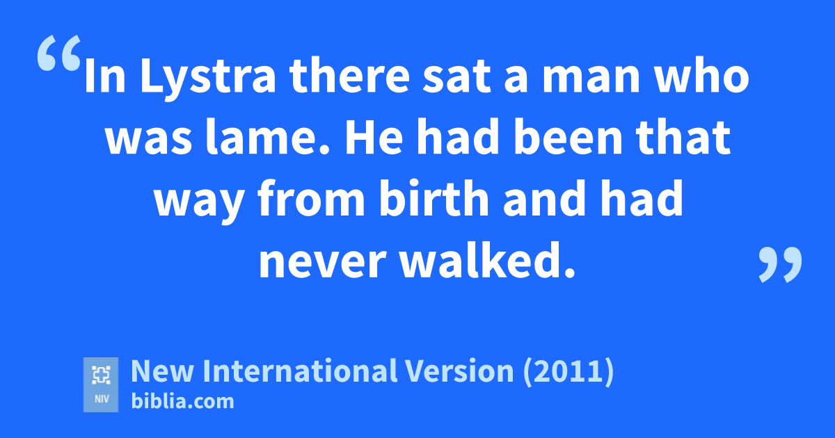 8 In Lystra there sat a man who was lame. He had been that way from birthz and had never walked. 9 He listened to Paul as he was speaking. Paul looked directly at him, saw that he had faith to be healeda 10 and called out, “Stand up on your feet!”b At that, the man jumped up and began to walk.c