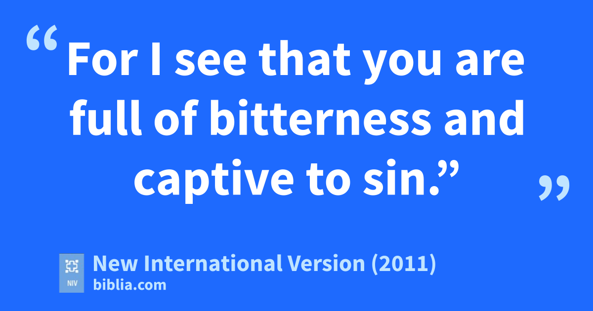 20 Peter answered: “May your money perish with you, because you thought you could buy the gift of God with money!k 21 You have no part or sharel in this ministry, because your heart is not rightm before God. 22 Repentn of this wickedness and pray to the Lord in the hope that he may forgive you for having such a thought in your heart. 23 For I see that you are full of bitterness and captive to sin.”