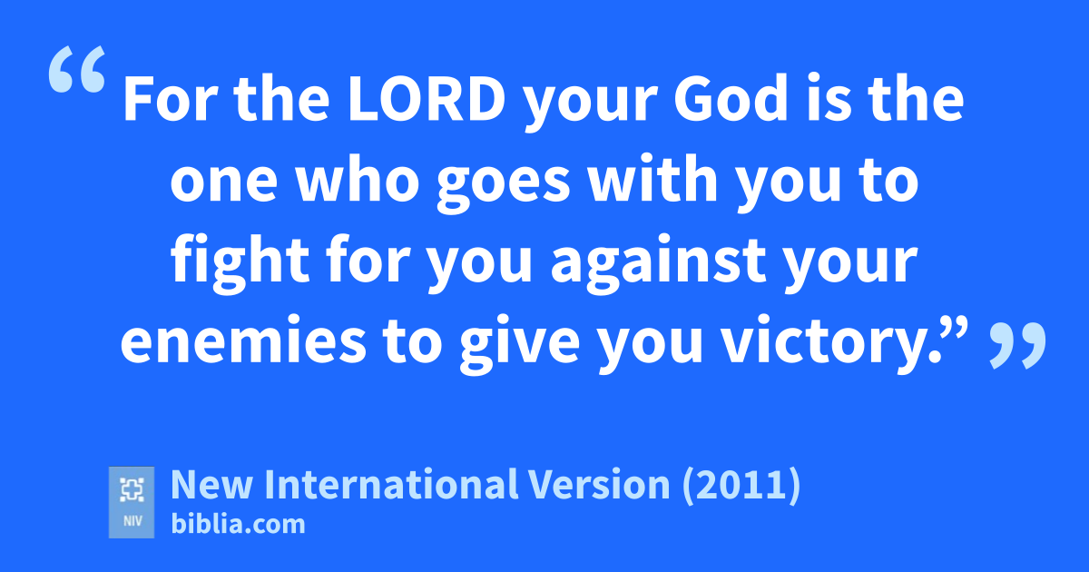 20 When you go to war against your enemies and see horses and chariots and an army greater than yours,j do not be afraidk of them,l because the Lord your God, who brought you up out of Egypt, will be withm you. 2 When you are about to go into battle, the priest shall come forward and address the army. 3 He shall say: “Hear, Israel: Today you are going into battle against your enemies. Do not be faintheartedn or afraid; do not panic or be terrified by them. 4 For the Lord your God is the one who goes with youo to fightp for you against your enemies to give you victory.q”