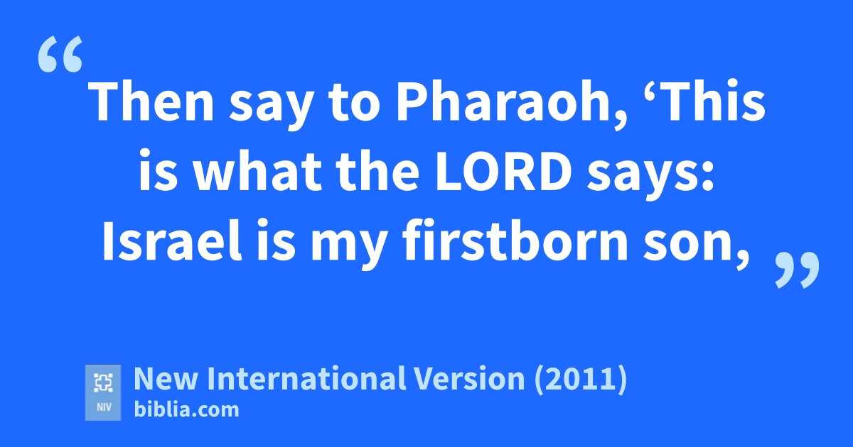 21 The Lord said to Moses, “When you return to Egypt, see that you perform before Pharaoh all the wondersr I have given you the power to do. But I will harden his hearts so that he will not let the people go.t 22 Then say to Pharaoh, ‘This is what the Lord says: Israel is my firstborn son,u 23 and I told you, “Let my son go,v so he may worshipw me.” But you refused to let him go; so I will kill your firstborn son.’ ”x