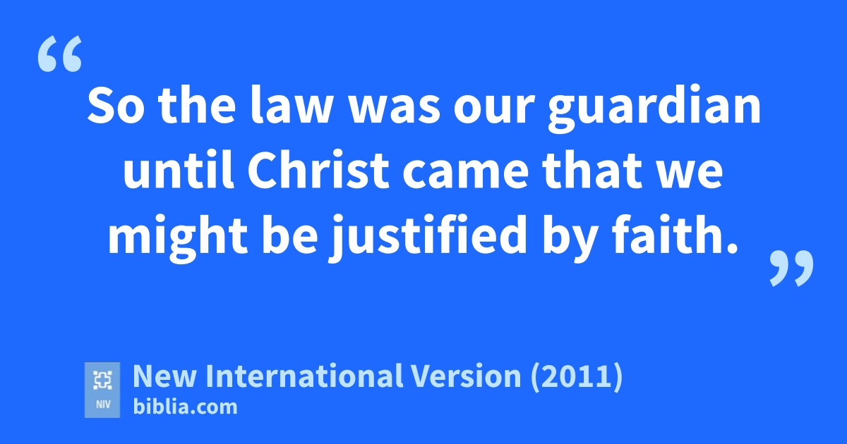 23 Before the coming of this faith,j we were held in custodyh under the law, locked up until the faith that was to come would be revealed.i 24 So the law was our guardian until Christ camej that we might be justified by faith.k 25 Now that this faith has come, we are no longer under a guardian.l