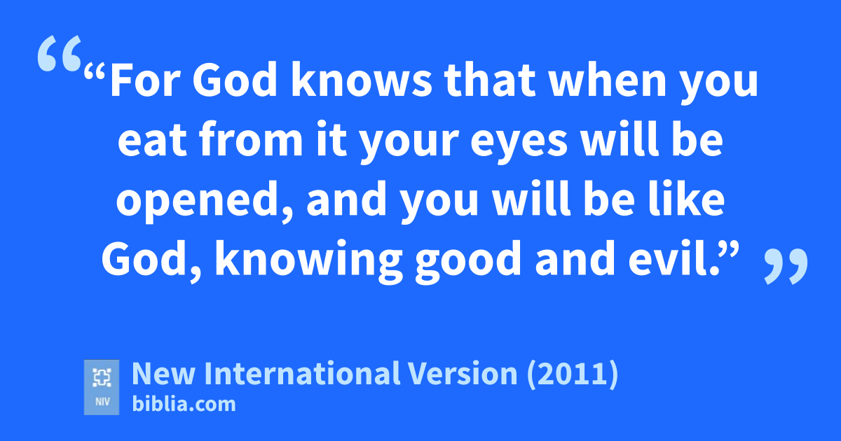 4 “You will not certainly die,” the serpent said to the woman.i 5 “For God knows that when you eat from it your eyes will be opened, and you will be like God,j knowing good and evil.”