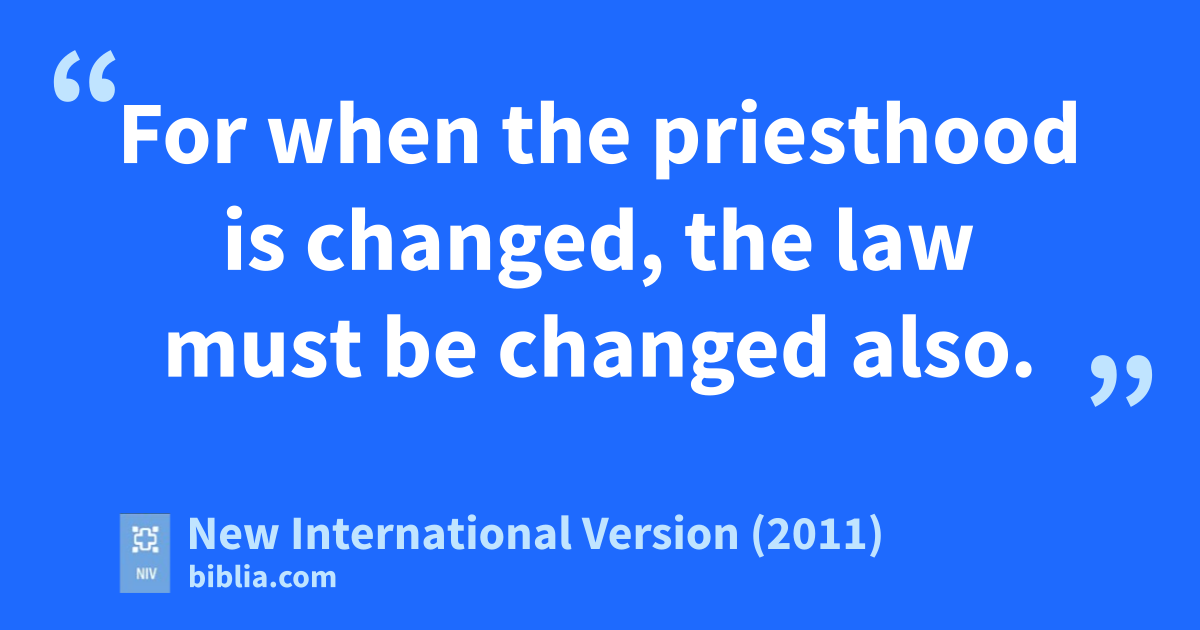 11 If perfection could have been attained through the Levitical priesthood—and indeed the law given to the peopleq established that priesthood—why was there still need for another priest to come,r one in the order of Melchizedek,s not in the order of Aaron? 12 For when the priesthood is changed, the law must be changed also. 13 He of whom these things are said belonged to a different tribe,t and no one from that tribe has ever served at the altar.u 14 For it is clear that our Lord descended from Judah,v and in regard to that tribe Moses said nothing about priests. 15 And what we have said is even more clear if another priest like Melchizedek appears, 16 one who has become a priest not on the basis of a regulation as to his ancestry but on the basis of the power of an indestructible life. 17 For it is declared: