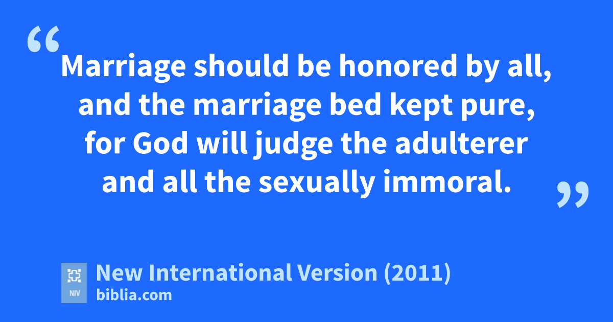 4 Marriage should be honored by all,o and the marriage bed kept pure, for God will judge the adulterer and all the sexually immoral.p 5 Keep your lives free from the love of moneyq and be content with what you have,r because God has said,