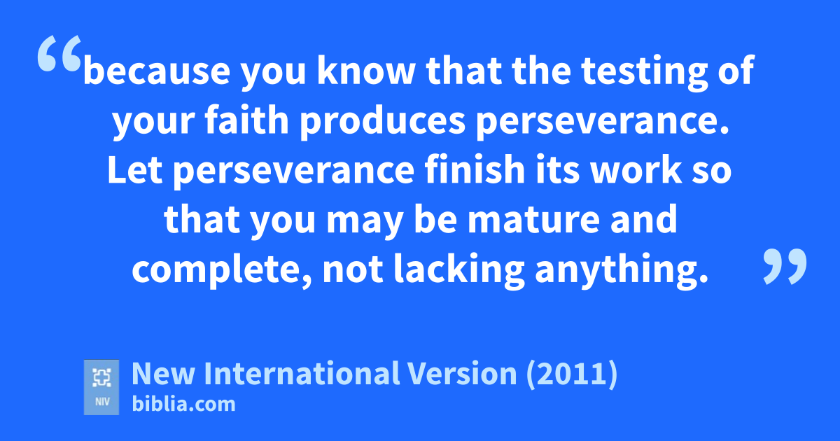 2 Consider it pure joy, my brothers and sisters,a whenever you face trials of many kinds,f 3 because you know that the testing of your faithg produces perseverance.h 4 Let perseverance finish its work so that you may be maturei and complete, not lacking anything. 5 If any of you lacks wisdom, you should ask God,j who gives generously to all without finding fault, and it will be given to you.k 6 But when you ask, you must believe and not doubt,l because the one who doubts is like a wave of the sea, blown and tossed by the wind. 7 That person should not expect to receive anything from the Lord. 8 Such a person is double-mindedm and unstablen in all they do.