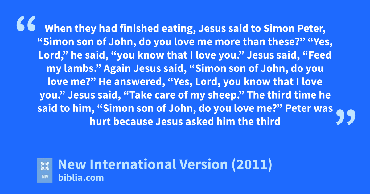 15 When they had finished eating, Jesus said to Simon Peter, “Simon son of John, do you love me more than these?”