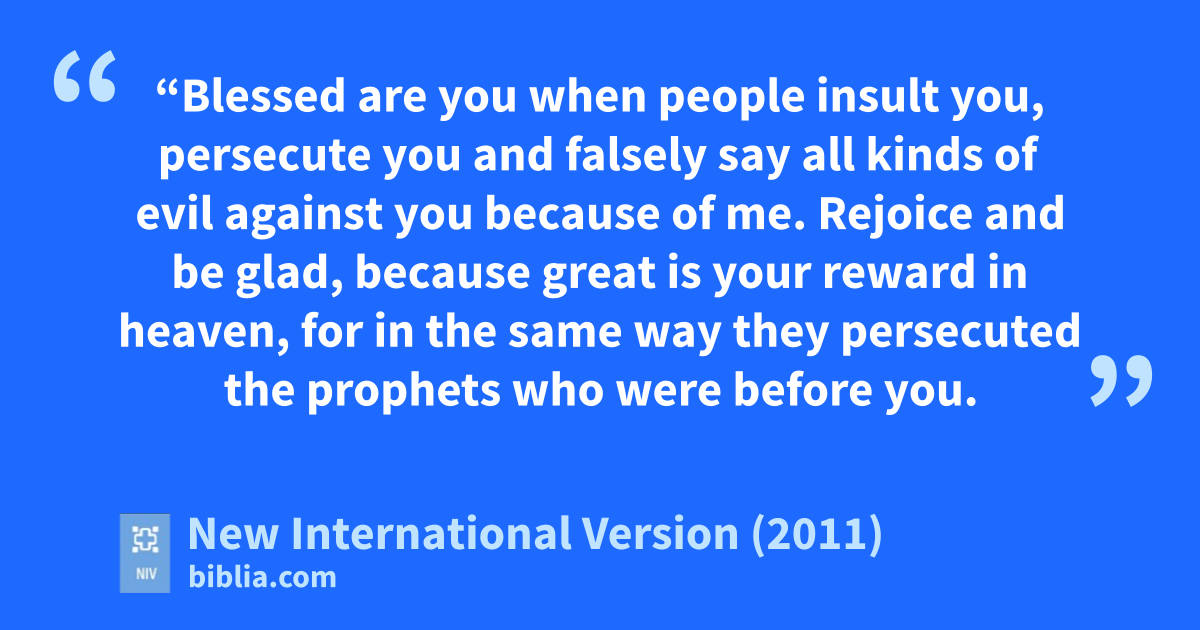 11 “Blessed are you when people insult you,q persecute you and falsely say all kinds of evil against you because of me.r 12 Rejoice and be glad,s because great is your reward in heaven, for in the same way they persecuted the prophets who were before you.t
