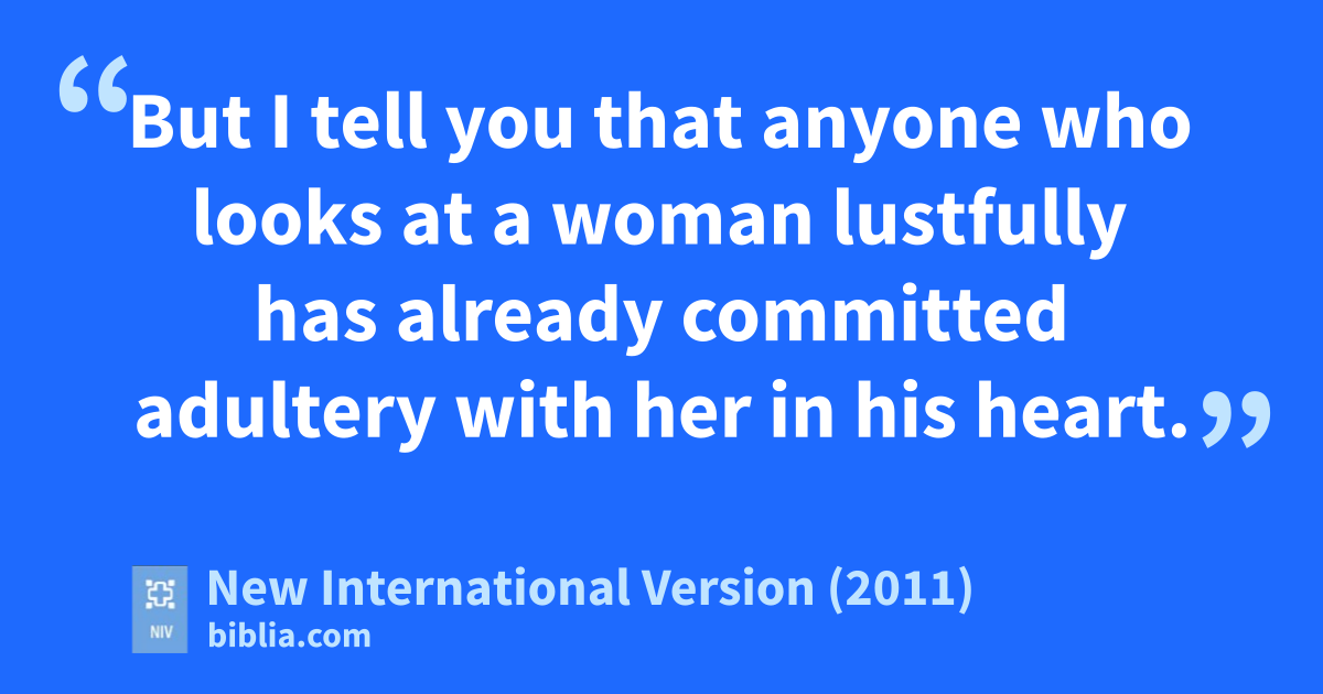 27 “You have heard that it was said, ‘You shall not commit adultery.’e j 28 But I tell you that anyone who looks at a woman lustfully has already committed adultery with her in his heart.k 29 If your right eye causes you to stumble,l gouge it out and throw it away. It is better for you to lose one part of your body than for your whole body to be thrown into hell. 30 And if your right hand causes you to stumble,m cut it off and throw it away. It is better for you to lose one part of your body than for your whole body to go into hell.