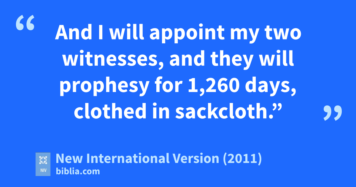 11 I was given a reed like a measuring rods and was told, “Go and measure the temple of God and the altar, with its worshipers. 2 But exclude the outer court;t do not measure it, because it has been given to the Gentiles.u They will trample on the holy cityv for 42 months.w 3 And I will appoint my two witnesses,x and they will prophesy for 1,260 days,y clothed in sackcloth.”z 4 They are “the two olive trees”a and the two lampstands, and “they stand before the Lord of the earth.”a b 5 If anyone tries to harm them, fire comes from their mouths and devours their enemies.c This is how anyone who wants to harm them must die.d 6 They have power to shut up the heavense so that it will not rain during the time they are prophesying;f and they have power to turn the waters into bloodg and to strike the earth with every kind of plague as often as they want.