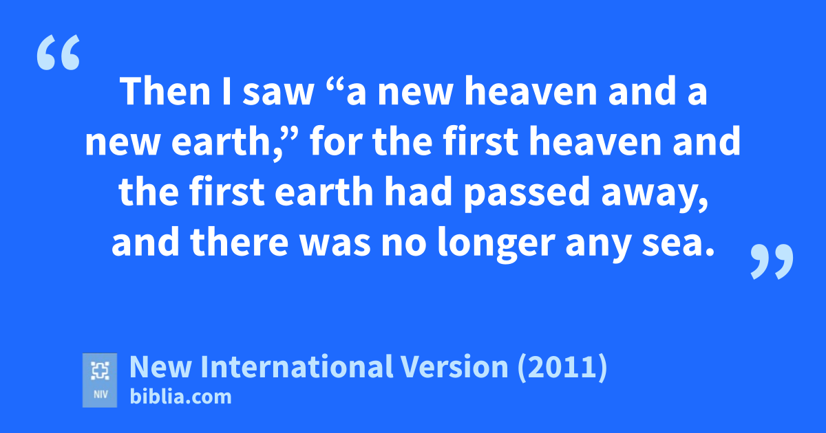 21 Then I saw “a new heaven and a new earth,”a m for the first heaven and the first earth had passed away,n and there was no longer any sea. 2 I saw the Holy City,o the new Jerusalem, coming down out of heaven from God,p prepared as a brideq beautifully dressed for her husband. 3 And I heard a loud voice from the throne saying, “Look! God’s dwelling place is now among the people, and he will dwell with them.r They will be his people, and God himself will be with them and be their God.s 4 ‘He will wipe every tear from their eyes.t There will be no more death’b u or mourning or crying or pain,v for the old order of things has passed away.”w