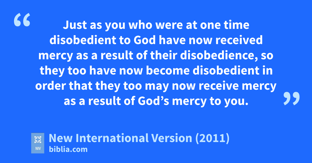 28 As far as the gospel is concerned, they are enemiess for your sake; but as far as election is concerned, they are loved on account of the patriarchs,t 29 for God’s gifts and his callu are irrevocable.v 30 Just as you who were at one time disobedientw to God have now received mercy as a result of their disobedience, 31 so they too have now become disobedient in order that they too may nowh receive mercy as a result of God’s mercy to you. 32 For God has bound everyone over to disobediencex so that he may have mercy on them all.