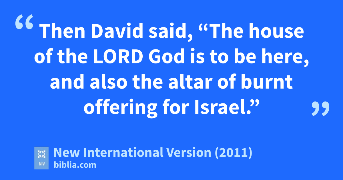 22 Then David said, “The house of the Lord Godu is to be here, and also the altar of burnt offering for Israel.”