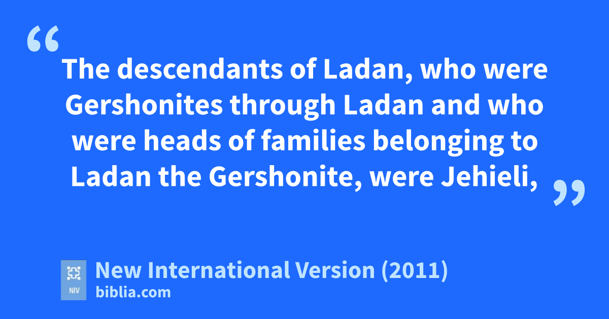21 The descendants of Ladan, who were Gershonites through Ladan and who were heads of families belonging to Ladan the Gershonite,h were Jehieli, 22 the sons of Jehieli, Zetham and his brother Joel. They were in charge of the treasuriesi of the temple of the Lord.