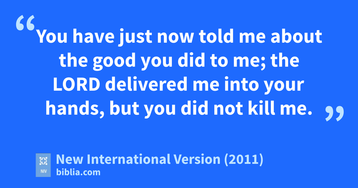 16 When David finished saying this, Saul asked, “Is that your voice,j David my son?” And he wept aloud. 17 “You are more righteous than I,”k he said. “You have treated me well,l but I have treated you badly.m 18 You have just now told me about the good you did to me; the Lord deliveredn me into your hands, but you did not kill me. 19 When a man finds his enemy, does he let him get away unharmed? May the Lord rewardo you well for the way you treated me today. 20 I know that you will surely be kingp and that the kingdomq of Israel will be established in your hands. 21 Now swearr to me by the Lord that you will not kill off my descendants or wipe out my name from my father’s family.s”