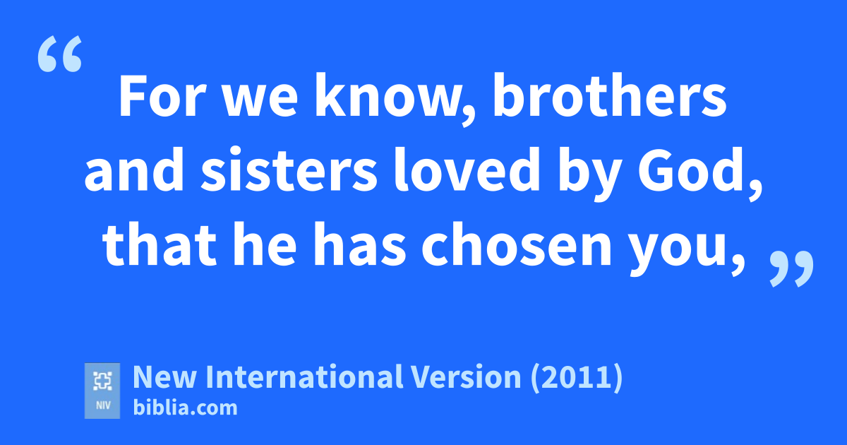 4 For we know, brothers and sistersb loved by God,k that he has chosen you, 5 because our gospell came to you not simply with words but also with power,m with the Holy Spirit and deep conviction. You known how we lived among you for your sake. 6 You became imitators of uso and of the Lord, for you welcomed the message in the midst of severe sufferingp with the joyq given by the Holy Spirit.r 7 And so you became a models to all the believers in Macedoniat and Achaia.u 8 The Lord’s messagev rang out from you not only in Macedonia and Achaia—your faith in God has become known everywhere.w Therefore we do not need to say anything about it, 9 for they themselves report what kind of reception you gave us. They tell how you turnedx to God from idolsy to serve the living and true God,z 10 and to wait for his Son from heaven,a whom he raised from the deadb—Jesus, who rescues us from the coming wrath.c