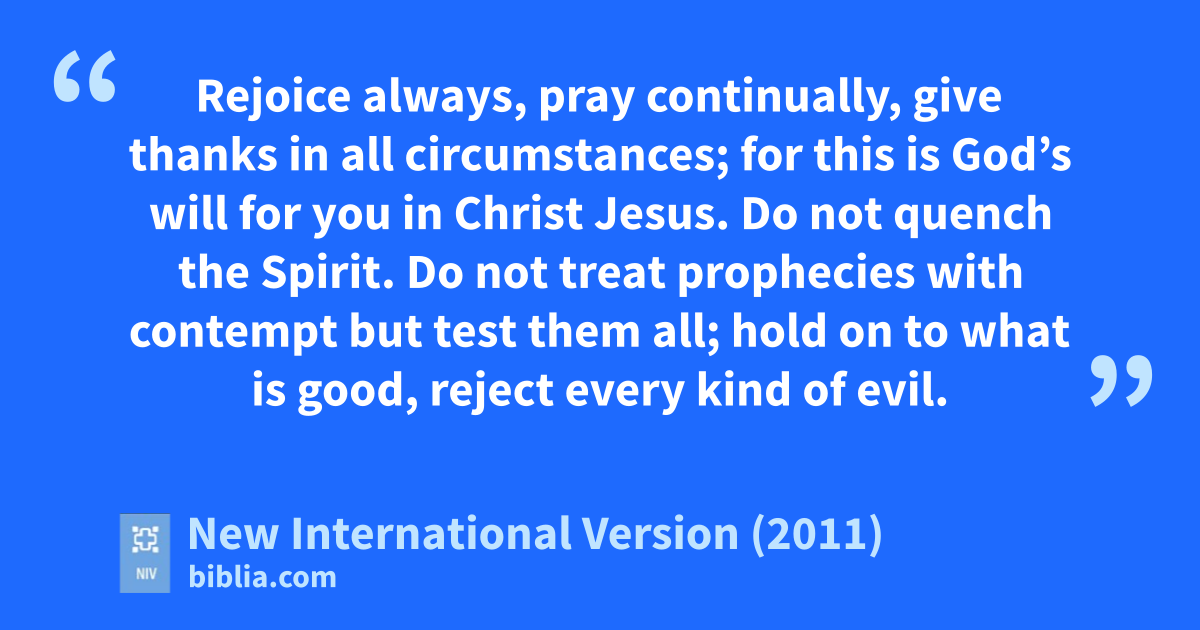 16 Rejoice always,k 17 pray continually,l 18 give thanks in all circumstances;m for this is God’s will for you in Christ Jesus.