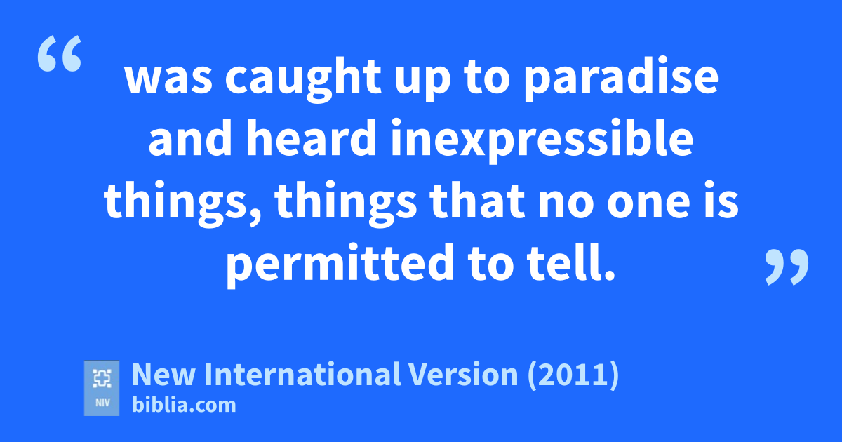 12 I must go on boasting.r Although there is nothing to be gained, I will go on to visions and revelationss from the Lord. 2 I know a man in Christt who fourteen years ago was caught upu to the third heaven.v Whether it was in the body or out of the body I do not know—God knows.w 3 And I know that this man—whether in the body or apart from the body I do not know, but God knows—4 was caught upx to paradisey and heard inexpressible things, things that no one is permitted to tell. 5 I will boast about a man like that, but I will not boast about myself, except about my weaknesses.z 6 Even if I should choose to boast,a I would not be a fool,b because I would be speaking the truth. But I refrain, so no one will think more of me than is warranted by what I do or say, 7 or because of these surpassingly great revelations.c Therefore, in order to keep me from becoming conceited, I was given a thorn in my flesh,d a messenger of Satan,e to torment me. 8 Three times I pleaded with the Lord to take it away from me.f 9 But he said to me, “My graceg is sufficient for you, for my powerh is made perfect in weakness.i”j Therefore I will boast all the more gladly about my weaknesses, so that Christ’s power may rest on me. 10 That is why, for Christ’s sake, I delightk in weaknesses, in insults, in hardships,l in persecutions,m in difficulties. For when I am weak, then I am strong.n