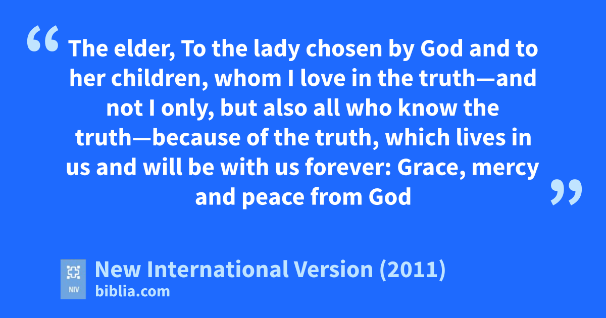 To the lady chosen by Godb and to her children, whom I love in the truthc—and not I only, but also all who know the truthd—2 because of the truth,e which lives in usf and will be with us forever: