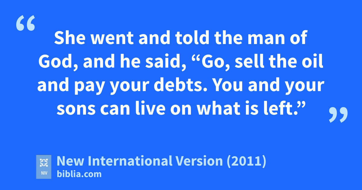 7 She went and told the man of God,e and he said, “Go, sell the oil and pay your debts. You and your sons can live on what is left.”