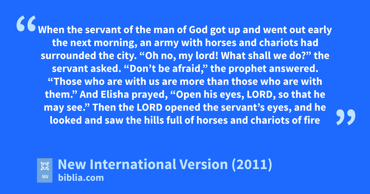 15 When the servant of the man of God got up and went out early the next morning, an army with horses and chariots had surrounded the city. “Oh no, my lord! What shall we do?” the servant asked.