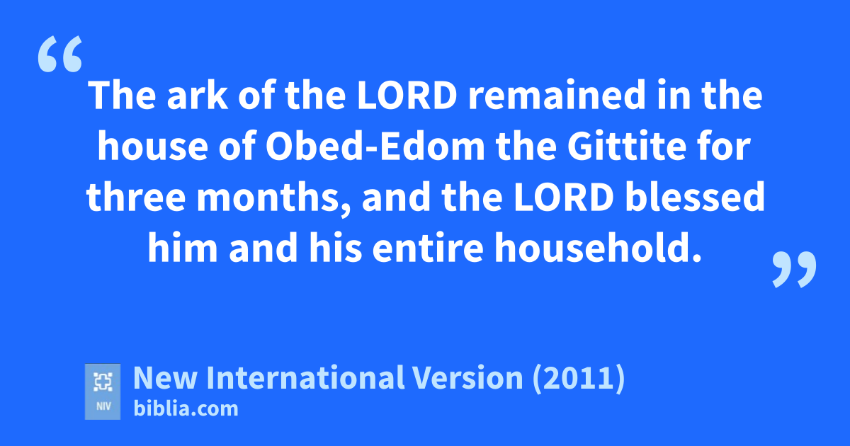 9 David was afraid of the Lord that day and said, “Hown can the ark of the Lord ever come to me?” 10 He was not willing to take the ark of the Lord to be with him in the City of David. Instead, he took it to the house of Obed-Edomo the Gittite. 11 The ark of the Lord remained in the house of Obed-Edom the Gittite for three months, and the Lord blessed him and his entire household.p