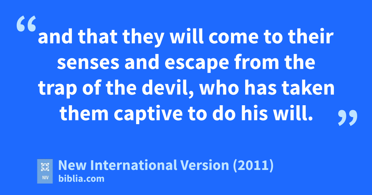 22 Flee the evil desires of youth and pursue righteousness, faith, lovec and peace, along with those who call on the Lordd out of a pure heart.e 23 Don’t have anything to do with foolish and stupid arguments, because you know they produce quarrels.f 24 And the Lord’s servant must not be quarrelsome but must be kind to everyone, able to teach, not resentful.g 25 Opponents must be gently instructed, in the hope that God will grant them repentance leading them to a knowledge of the truth,h 26 and that they will come to their senses and escape from the trap of the devil,i who has taken them captive to do his will.
