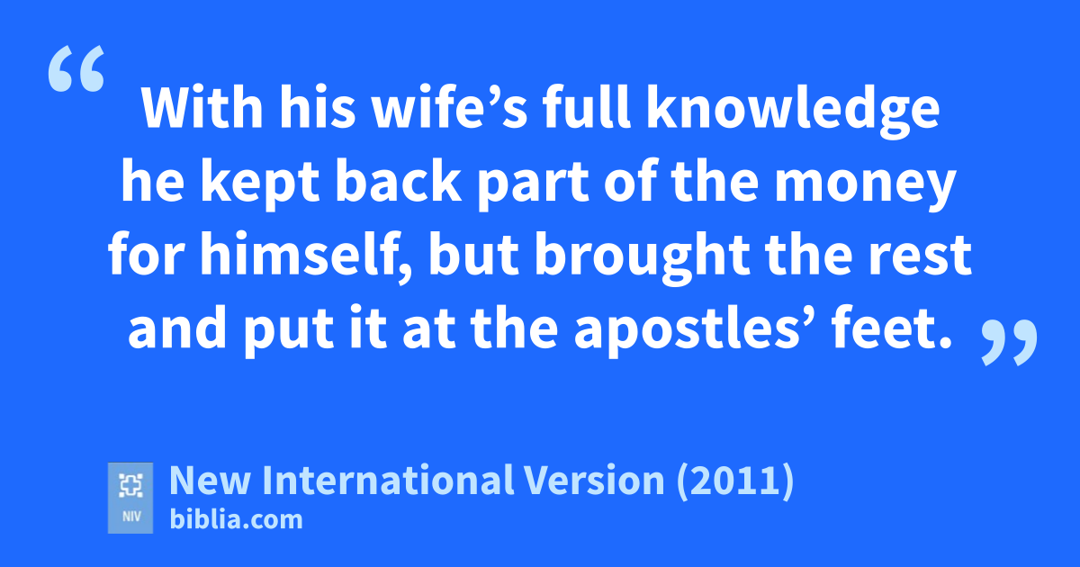 5 Now a man named Ananias, together with his wife Sapphira, also sold a piece of property. 2 With his wife’s full knowledge he kept back part of the money for himself,w but brought the rest and put it at the apostles’ feet.x
