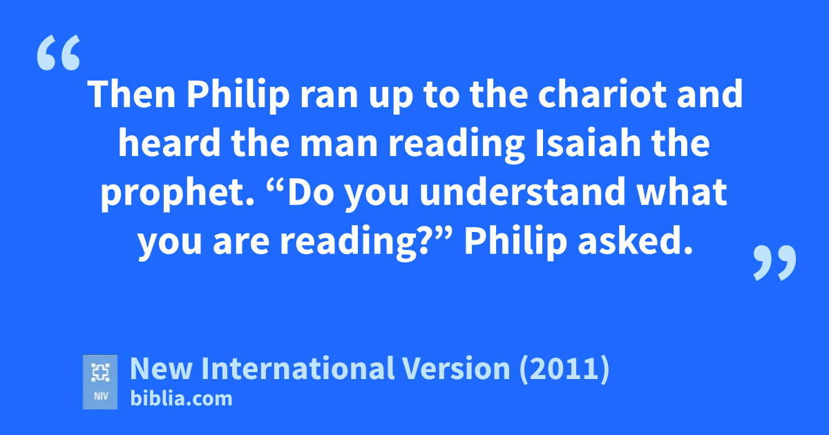 30 Then Philip ran up to the chariot and heard the man reading Isaiah the prophet. “Do you understand what you are reading?” Philip asked.