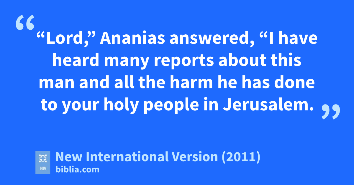 13 “Lord,” Ananias answered, “I have heard many reports about this man and all the harm he has done to your holy peopler in Jerusalem.s 14 And he has come here with authority from the chief priestst to arrest all who call on your name.”u
