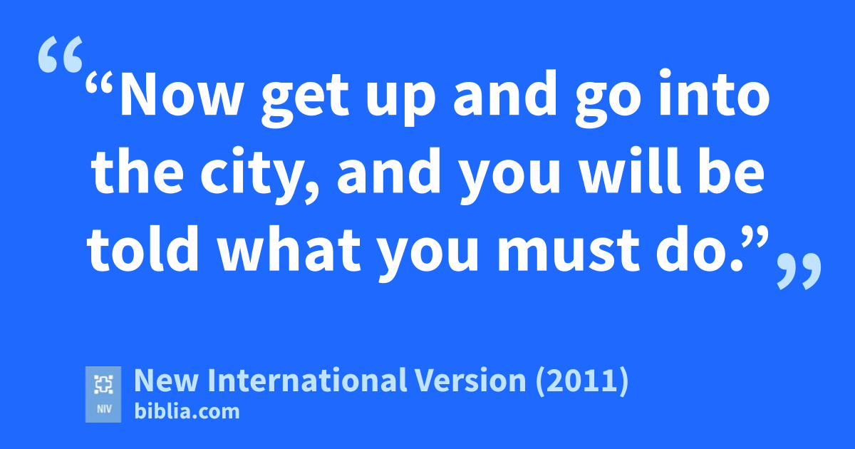 “I am Jesus, whom you are persecuting,” he replied. 6 “Now get up and go into the city, and you will be told what you must do.”k