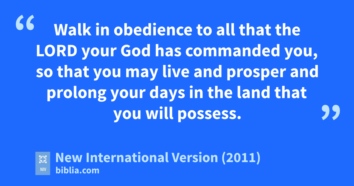 32 So be careful to do what the Lord your God has commanded you;m do not turn aside to the right or to the left.n 33 Walk in obedience to all that the Lord your God has commanded you,o so that you may live and prosper and prolong your daysp in the land that you will possess.