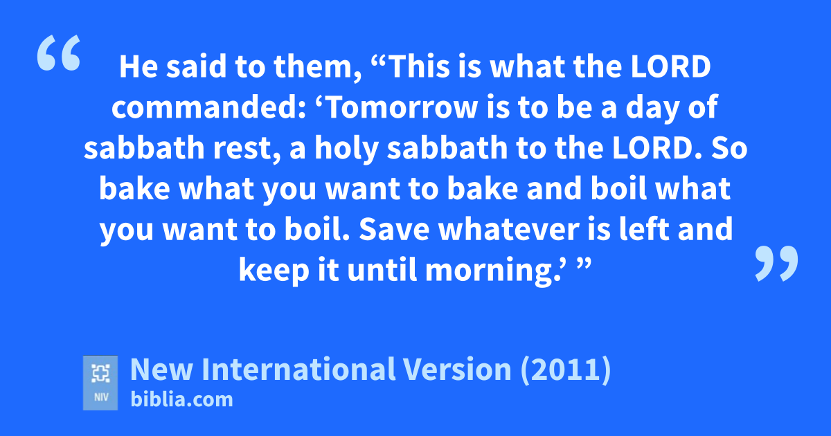 21 Each morning everyone gathered as much as they needed, and when the sun grew hot, it melted away. 22 On the sixth day, they gathered twiceq as much—two omersb for each person—and the leaders of the communityr came and reported this to Moses. 23 He said to them, “This is what the Lord commanded: ‘Tomorrow is to be a day of sabbath rest, a holy sabbaths to the Lord. So bake what you want to bake and boil what you want to boil. Save whatever is left and keep it until morning.’ ”