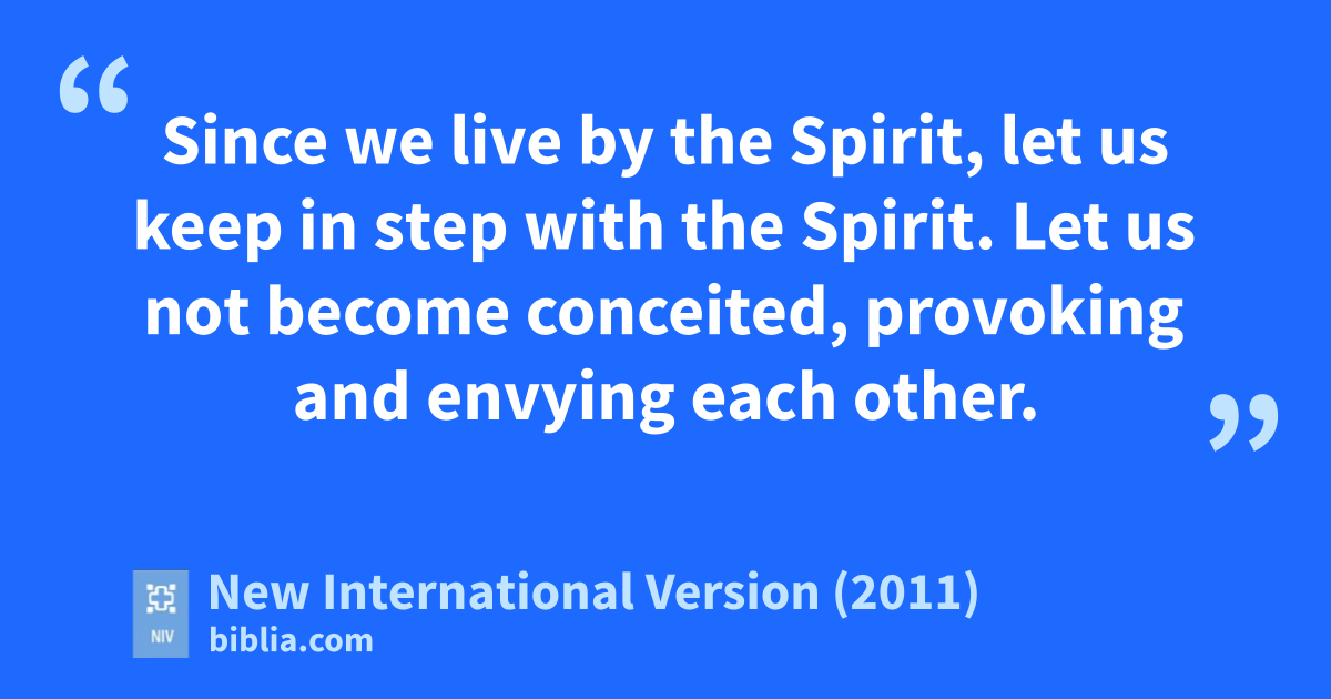 22 But the fruitu of the Spirit is love,v joy, peace,w forbearance, kindness, goodness, faithfulness, 23 gentleness and self-control.x Against such things there is no law.y 24 Those who belong to Christ Jesus have crucified the fleshz with its passions and desires.a 25 Since we live by the Spirit,b let us keep in step with the Spirit. 26 Let us not become conceited,c provoking and envying each other.