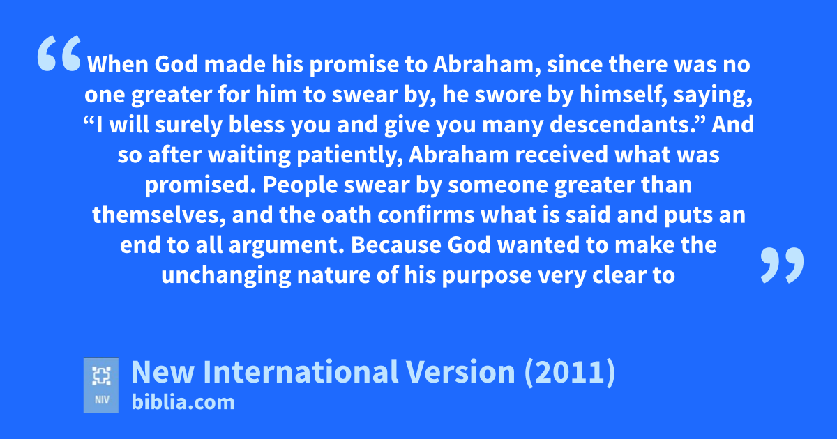 13 When God made his promise to Abraham, since there was no one greater for him to swear by, he swore by himself,t 14 saying, “I will surely bless you and give you many descendants.”d u 15 And so after waiting patiently, Abraham received what was promised.v