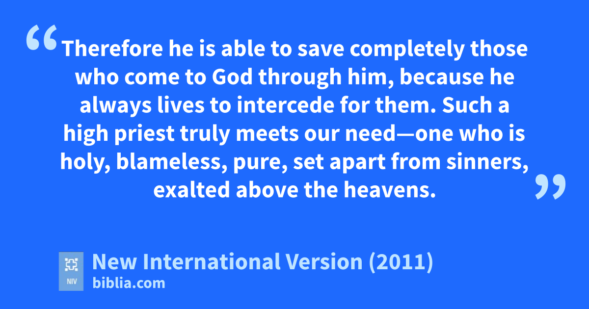 23 Now there have been many of those priests, since death prevented them from continuing in office; 24 but because Jesus lives forever, he has a permanent priesthood.e 25 Therefore he is able to savef completelyc those who come to Godg through him, because he always lives to intercede for them.h