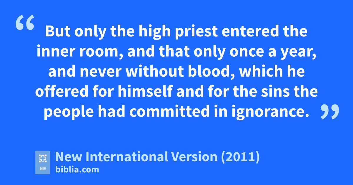6 When everything had been arranged like this, the priests entered regularlye into the outer room to carry on their ministry. 7 But only the high priest enteredf the inner room,g and that only once a year,h and never without blood,i which he offered for himselfj and for the sins the people had committed in ignorance.k 8 The Holy Spirit was showingl by this that the waym into the Most Holy Place had not yet been disclosed as long as the first tabernacle was still functioning. 9 This is an illustrationn for the present time, indicating that the gifts and sacrifices being offeredo were not able to clear the consciencep of the worshiper. 10 They are only a matter of foodq and drinkr and various ceremonial washingss—external regulationst applying until the time of the new order.